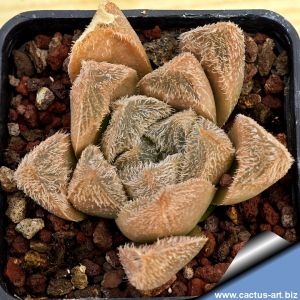 An ultra-dark cultivar with triangular leaves from deep brown to black, covered in white warty bumps topped by sharp translucent teeth. The overall effect is absolutely stunning! Limited stock. Only a few specimens available.
