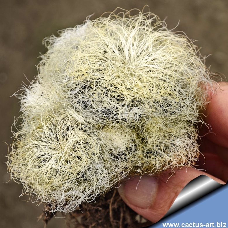 A remarkable species featuring flattened spherical stems clad in dense, hair-like, yellowish-white, contorted spines, giving a soft, cloud-like look. Its magenta flowers are vivid and dramatic.