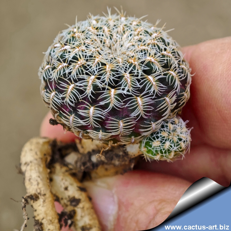The flowers cluster around the lower part of the stem, they are purple to purplish red or dark red and clover-shented. The spines are short comb-like, spreading out and bent towards the body.